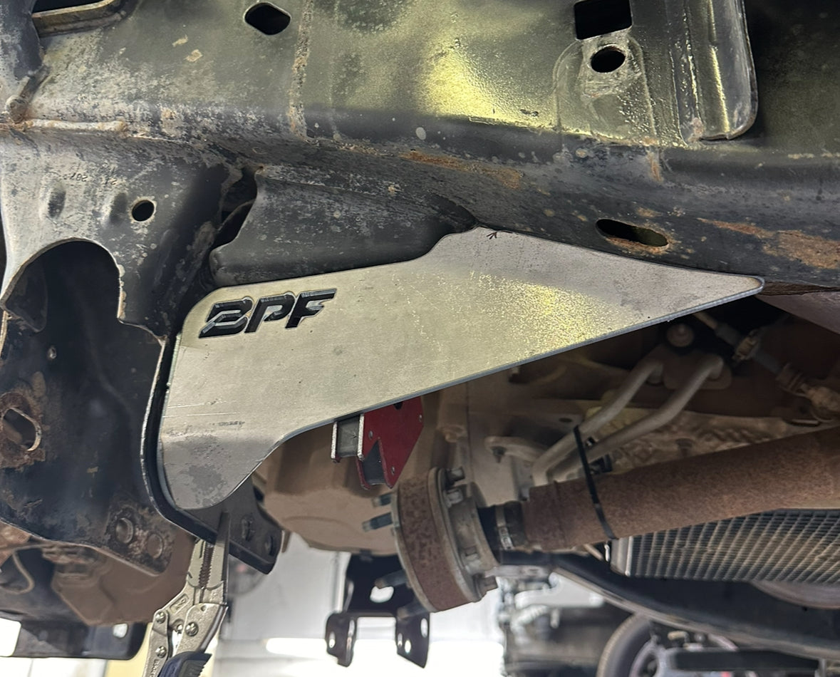 Our rear pocket brace prevents your back pockets from bending backwards with hard offroad abuse. These add significant strength to the frame as well add lateral support to the frame rails above.