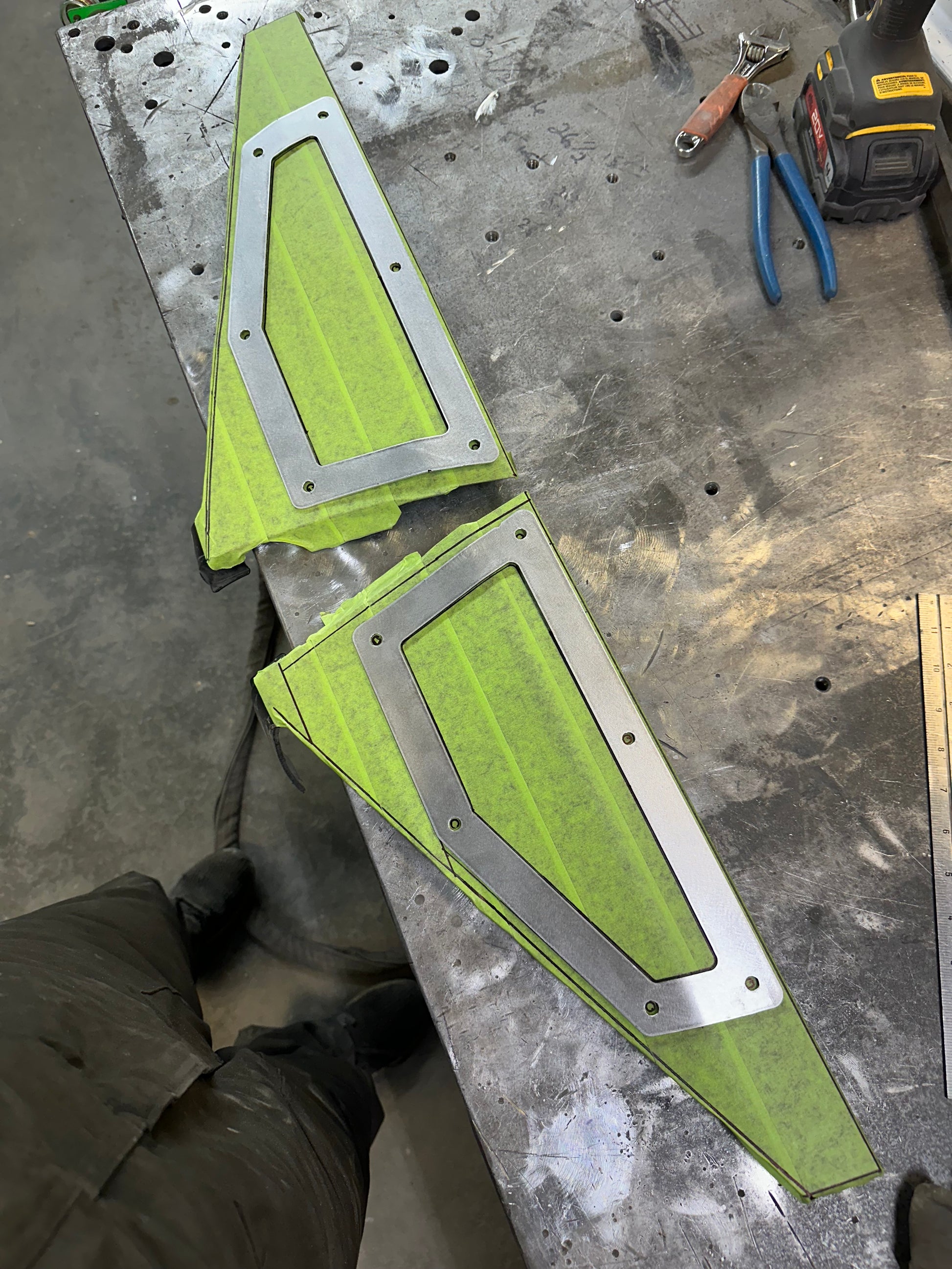 *We highly recommend an experienced fabricator for installation. The aluminum surround will have to be fitted and bent around the shape of the oem bedside trim as shown in an image below.*